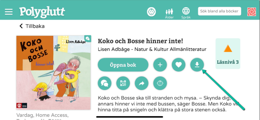 De böcker du valt att ladda ner till din enhet har du nu tillgång till i Polyglutt offline. Du kan däremot inte logga in i Polyglutt utan att din enhet har uppkoppling.