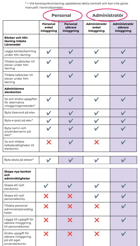 Det är endast vid ett tillfälle en personal - som inte är administratör - behöver kunna logga in säkrare. Och det är när ni har tjänsten Inlästa Läromedel och du ska tilldela en elev talboksrättigheter.