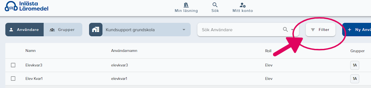 All inloggad personal kan filtrera fram vem eller vilka på skolan/organisationen som har administratörsrättigheter.