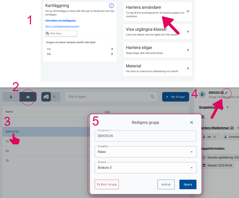 1 Hittar du inte din grupp i listan kan du lägga till den genom att gå till Hantera användare uppe till höger.