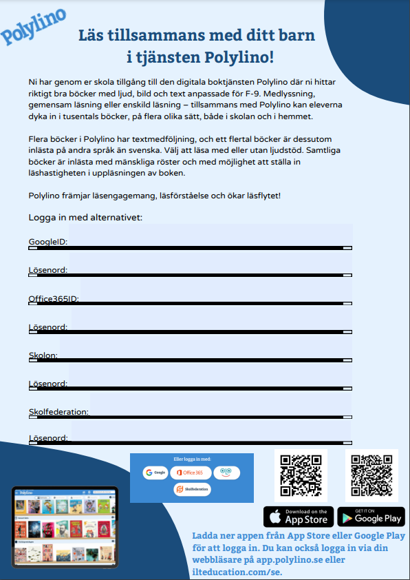 Här hittar du en kort presentation av Polylino med möjlighet att fylla i din elevs inloggningsuppgifter.
