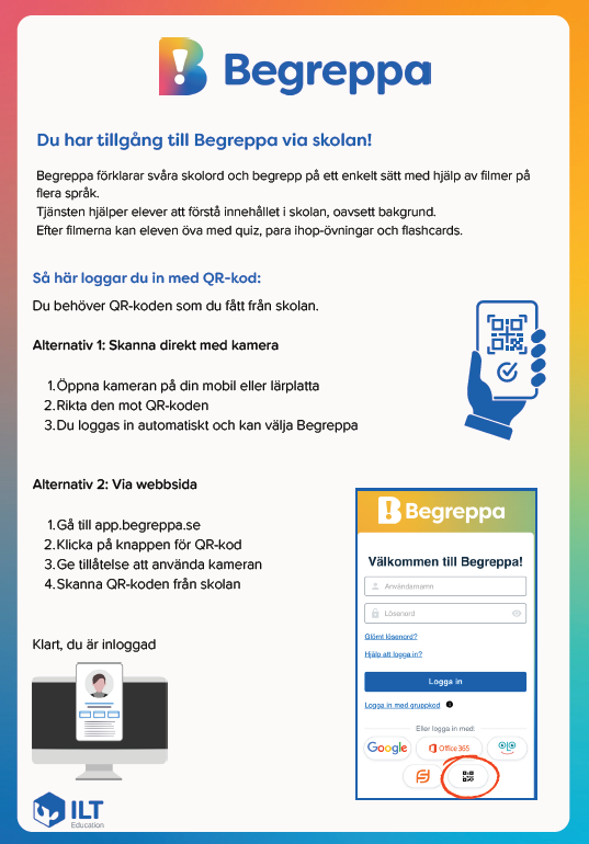 Här hittar du en kort presentation av Begreppa och instruktioner för hur din elev loggar in med QR-kod