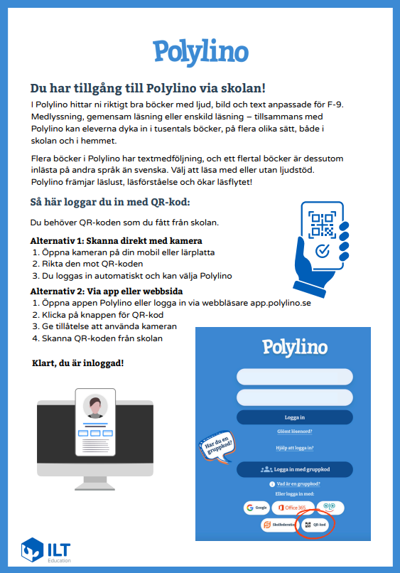 Här hittar du en kort presentation av Polylino med instruktioner för hur eleven loggar in med sin QR-kod.