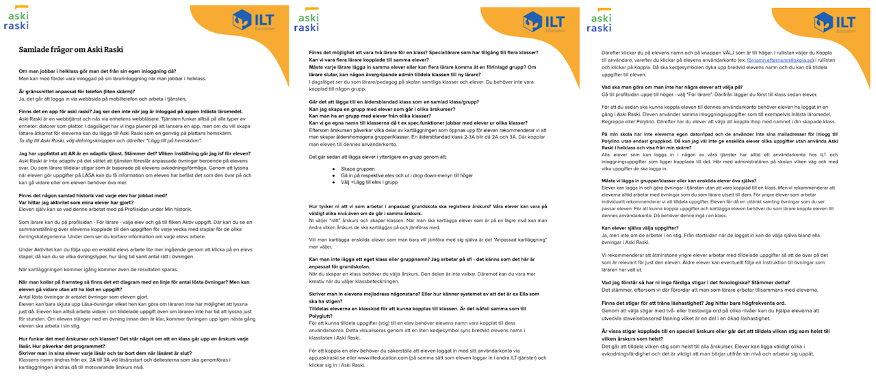 Här hittar du samlade frågor som vi fått under våra webbinarier om Aski Raski. Du kan se alla frågorna här bredvid som bilder, men det går även att ladda ner alla frågorna som en pdf.