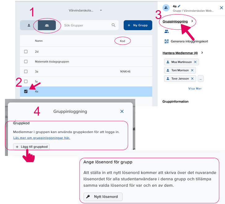 Eller så kan ni välja att sätta ett gemensamt lösenord för alla elever som ingår i en grupp. Rekommenderas för yngre elever eller elever i anpassad skola.