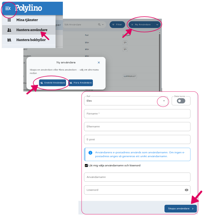 2 Klicka på + Ny användare. Välj i nästa steg Enskild användare.