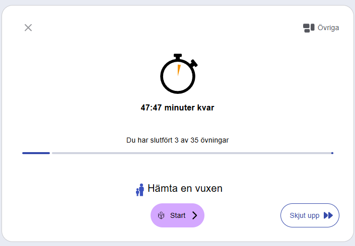 Möjligt att skjuta upp och ta fram Läsa-övningar