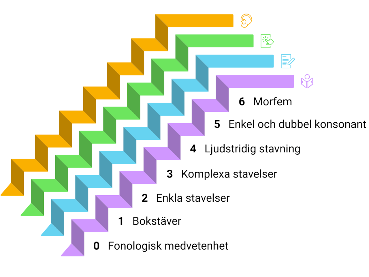 genom parallell struktur i Nivå 1 & 2 ges eleven möjlighet att börja läsinlärningen med stavelser, ord och meningar innehållandes endast de bokstäver eleven övat och är säker på